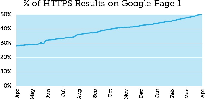Google’s updated algorithm ensures that those pages with an HTTPS URL are ranked higher. This fact was substantiated by a 2017 Moz study which found that more than 50% of all pages on Google’s first page results were HTTPS pages.